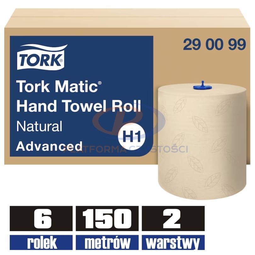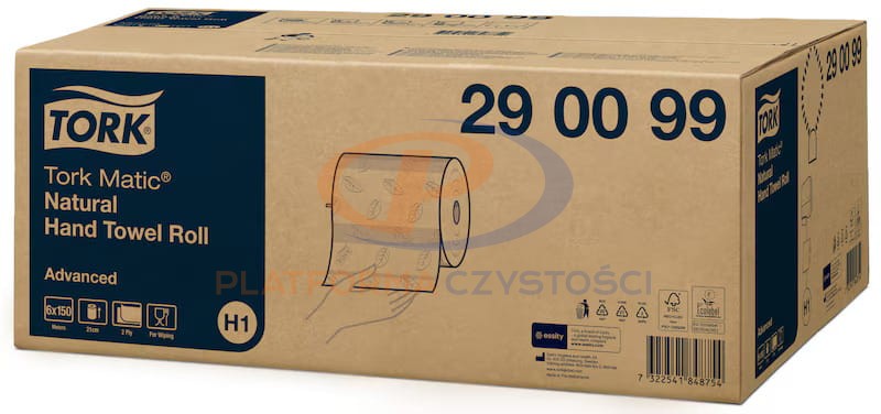 Tork Matic to system ręczników w roli z linii Advanced, który doskonale sprawdzi się w miejscach o dużym natężeniu ruchu takim jak zakłady przemysłowe, szkoły czy lotniska. Jedna rolka wystarcza na 600 osuszeń rąk. Ręcznik dwuwarstwowy wykonany przy użyciu minimalnej ilości kleju wkomponowanego w jego strukturę w formie bezbarwnego wzoru. Jedna warstwa wykonana jest z celulozy w technologii TAD, a druga z makulatury dzięki czemu ręcznik jest niezwykle chłonny oraz mięsisty. System H1.