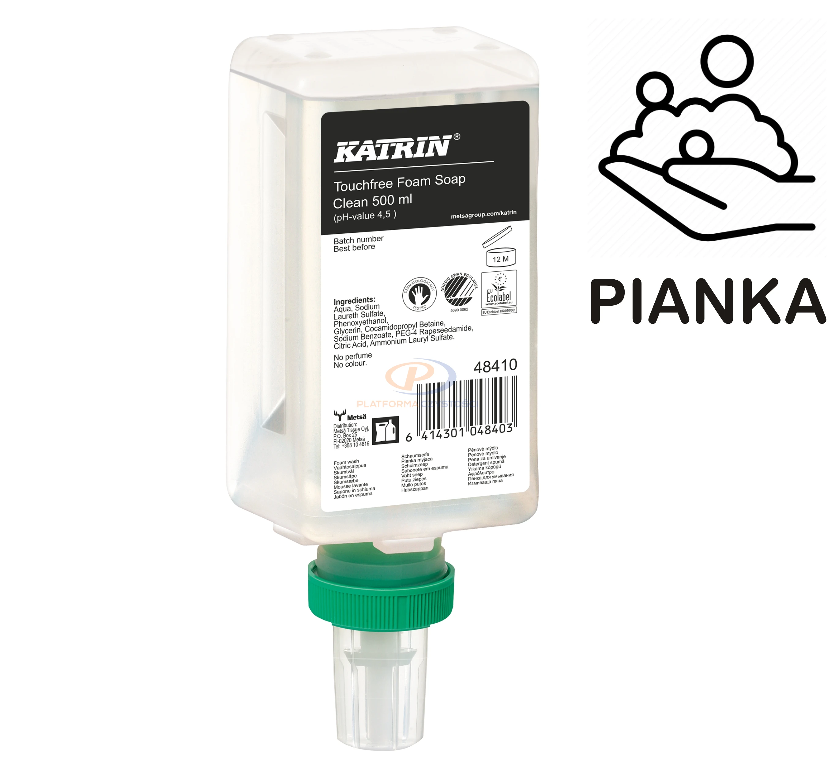 Katrin Clean Touchfree 500ml to wydajne, łagodne mydło w piance o przyjemnym zapachu. Mydło jest bardzo delikatne dla skóry posiada certyfikaty jakości Nordic Swan Eco-label oraz Ecolabel European Flower. Wkłady idealnie współgrają z bezdotykowym system dozowników Katrin Touchfree.