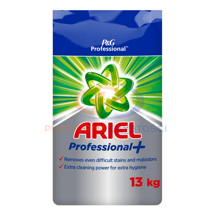Ariel Professional Formula + proszek do prania 13kg 162 prania to wysokiej jakości proszek do prania stworzony z myślą o pralniach zawodowych, hotelach oraz placówkach medycznych. Wyposażony jest w nowoczesną technologię Acti Lift oraz wybielacz tlenowy, które wspólnie gwarantują higieniczną czystość już w temperaturze 40°C. Skutecznie radzi sobie z trudnymi zabrudzeniami, zapewnia nieskazitelną biel oraz przyjemną świeżość. Przy odpowiednim dozowaniu wynoszącym 6g na każdy kilogram suchego prania pozwala na oczyszczenie nawet do 2100 kg odzieży.