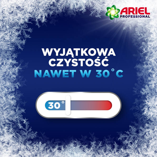 Proszek posiada specjalną formułę opracowaną z myślą o zapewnieniu 5-gwiazdkowych rezultatów czyszczenia dla profesjonalistów: doskonałe usuwanie plam, dogłębne czyszczenie, doskonała biel, wspaniała świeżość i wydajność w niskiej temperaturze. Proszek Ariel Professional znakomicie sprawdza się zarówno do prania ręcznego, w automatach jak również w pralnicach przemysłowych.