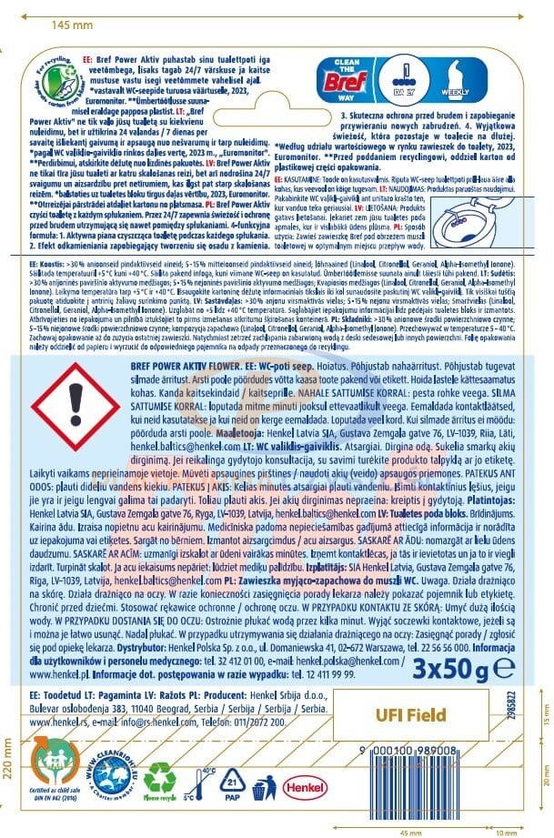 BREF WC Power Activ Świeże Kwiaty zawieszka do muszli 3x50g