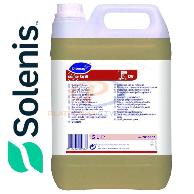 Suma Grill D9 jest bardzo silnym, alkalicznym preparatem do okresowego czyszczenia uporczywych zabrudzeń spowodowanych głównie nagromadzeniem się tłuszczu oraz zwęglonych resztek żywności na powierzchni pieców, grilli oraz smażalników. Suma Grill D9 jest mieszaniną rozpuszczalników, substancji alkalicznych i środków powierzchniowo czynnych, dzięki czemu skutecznie usuwa nawet zwęglone resztki żywności. Rozcieńczony produkt można zastosować do czyszczenia smażalników metodą namaczania.