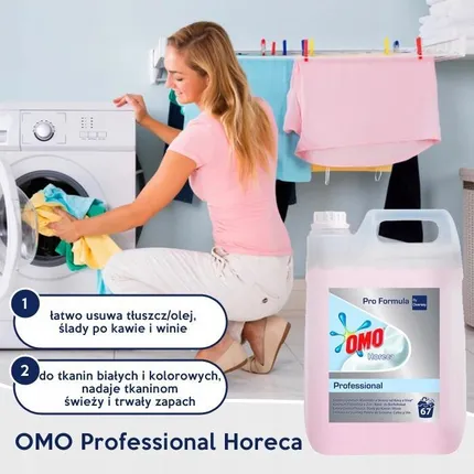 Omo Professional Horeca 5L / 67prań płyn do prania usuwa uporczywe plamy, takie jak tłuszcz, kawa i wino
