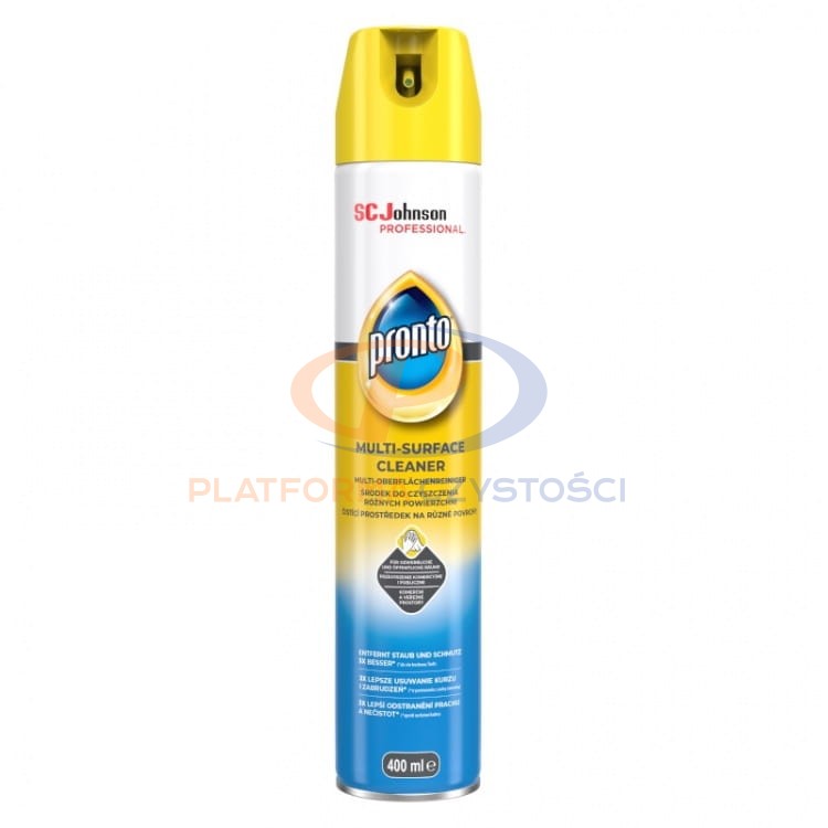 - Pronto Multi Surface dedykowane jest do czyszczenia różnych powierzchni w tym drewna, szkła, kamienia, plastiku, stali nierdzewnej